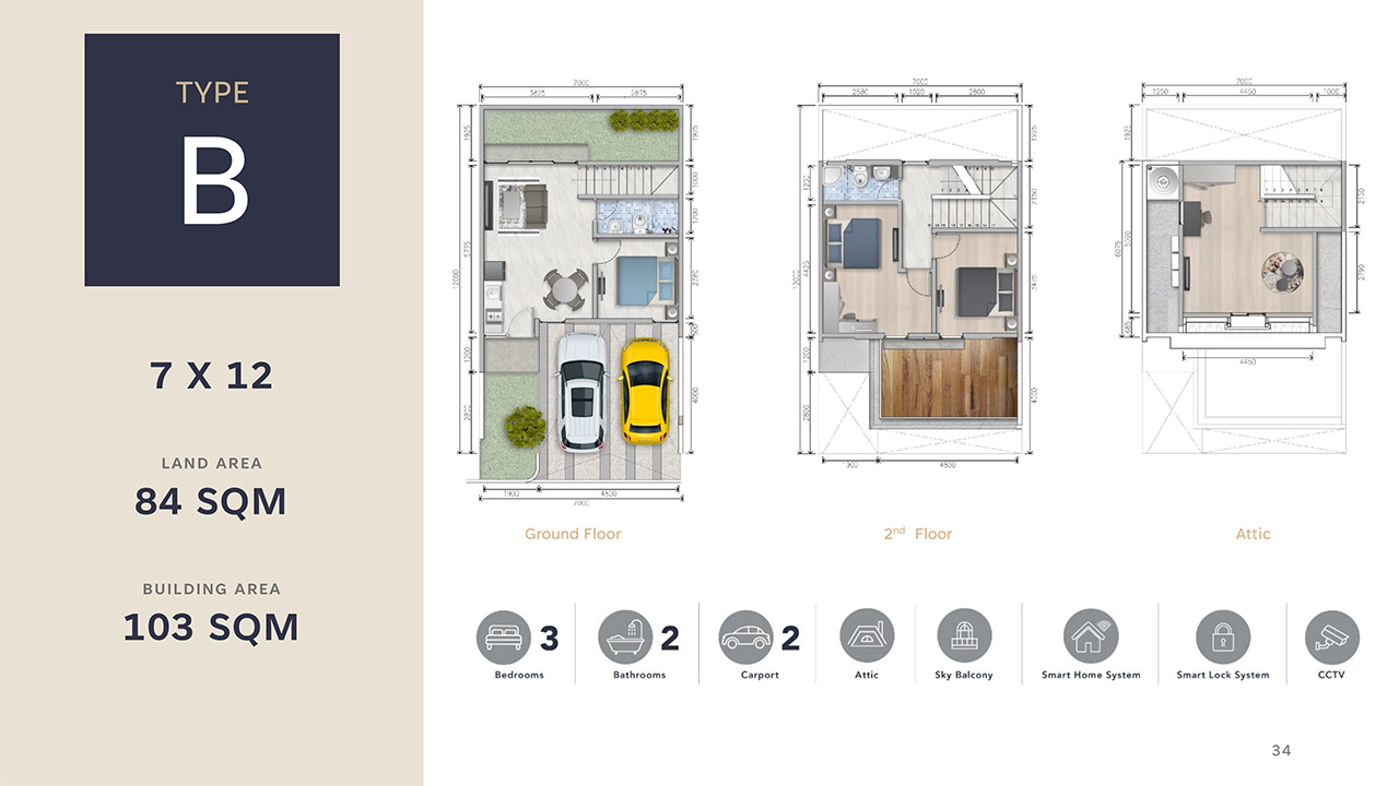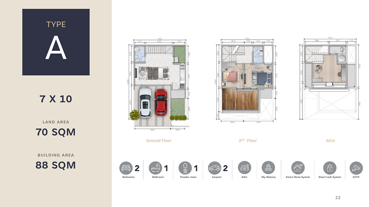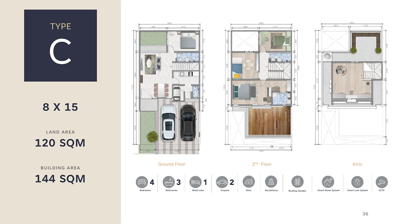 Setiap rumah memiliki fasad 'pedesaan modern', loteng multi-fungsi, dan balkon langit di mana Anda dapat menikmati pemandangan yang menenangkan.